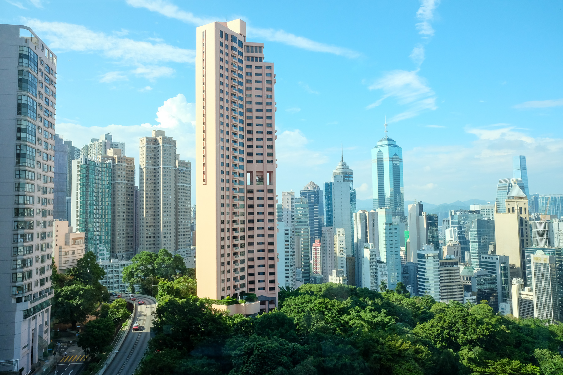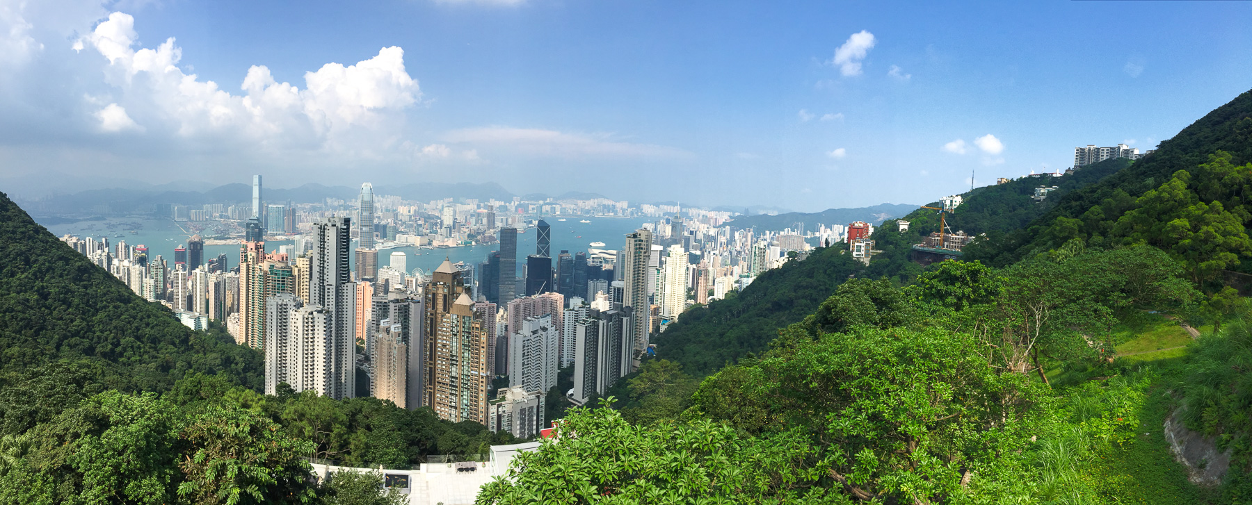 Ich hatte schon so viele atemberaubende Bilder vom Peak und dessen großartiger Aussicht auf die Stadt gesehen. Daher war das auch der erste Punkt auf unserem Hongkong-Plan. Der Peak ist ein 550 Meter hoher Berg, den man entweder mit der Tram, dem Bus oder zu Fuß besteigen kann. Wir wählten natürlich die letzte Option, was sich als wirklich gute Wahl rausstelle. So konnten wir nämlich während des gesamten Weges immer wieder die schönen Ausblicke auf die Stadt genießen und gleichzeitig die vielen Villen bewundern. Man fragt sich ganz automatisch, wie es wohl sein muss, hier oben wohnen zu können. Auf jeden Fall teuer.