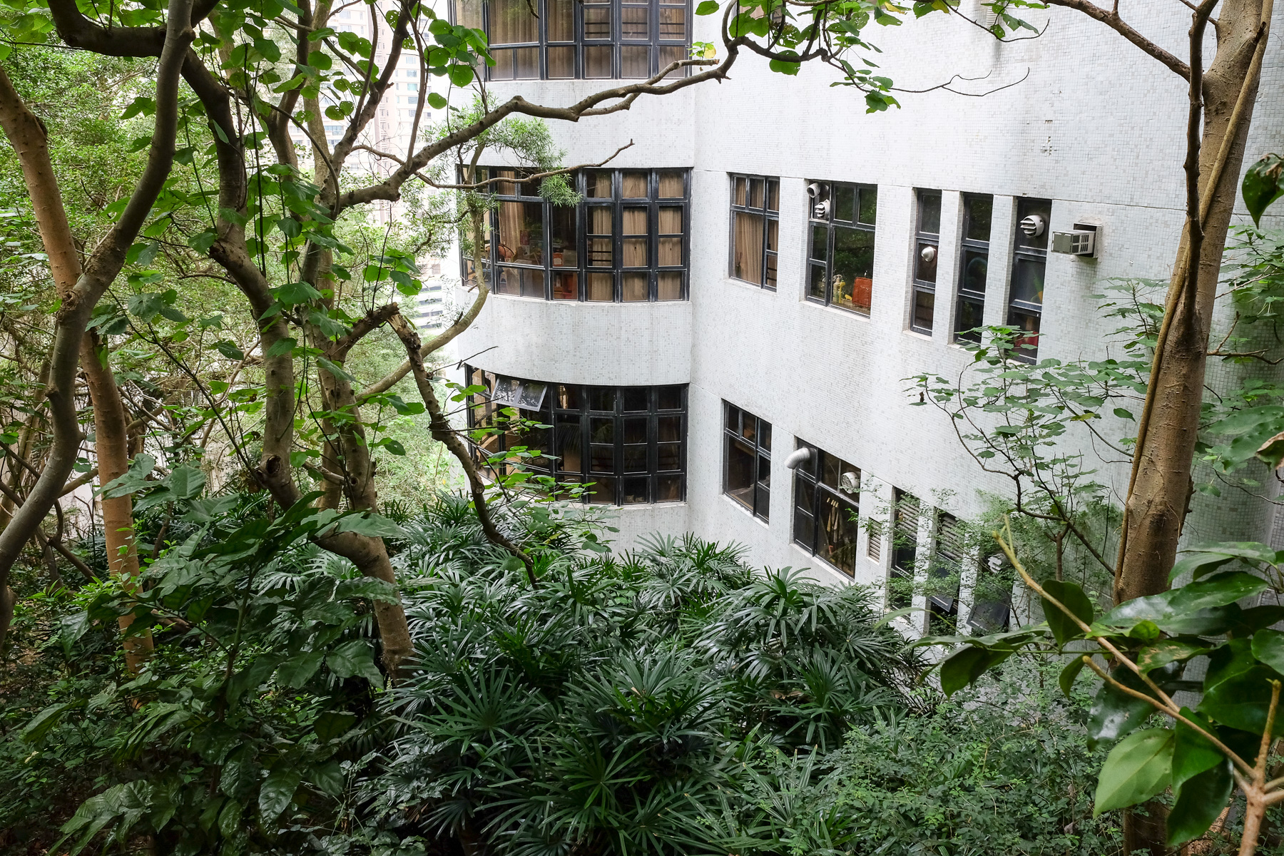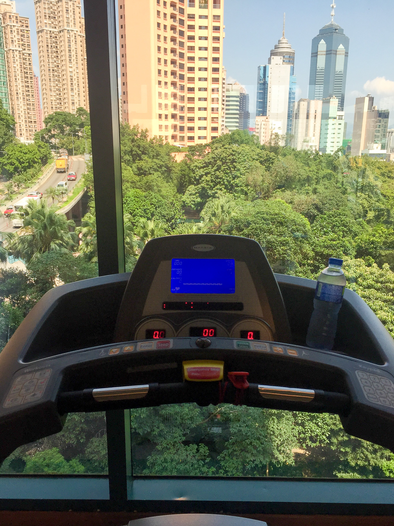 Marc hatte uns für die ersten Tage ein Hotel im Stadtteil Mid-Level gebucht. Vom Flughafen fuhren wir mit der U-Bahn bis in die Stadt. Google Maps zeigte uns, dass es von der Haltestelle nur knapp einen Kilometer bis zur Unterkunft war. “Das gehen wir zu Fuß, ist ja gar nicht so weit”, beschlossen wir. Eine recht blauäugige Entscheidung. Die Entfernung wurde zwar korrekt angezeigt, aber die wahnsinnige Steigung auf dieser kurzen Strecke war in der App nicht zu erkennen. Die „paar“ hundert Meter wurden somit zu einer sportlichen Herausforderung im tropischen Klima (32° Celsius + gigantisch hohe Luftfeuchtigkeit).