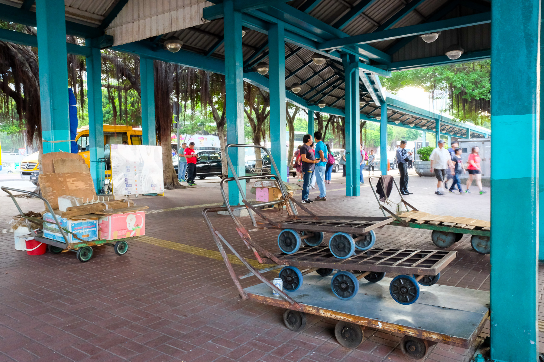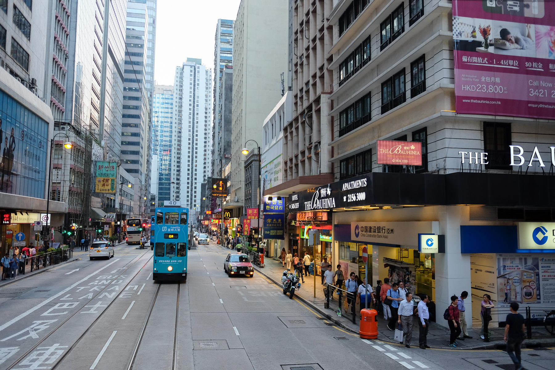 Nach unserem Check-in liefen wir den Kilometer wieder nach Downtown hinunter um einen ersten Eindruck von der Stadt zu bekommen. Es ging ganz schön wild zu. Eine Kakophonie aus Autohupen, „Ding-Ding”-Geräuschen von den zweistöckigen Straßenbahnen und das Tackern der Fußgängerampeln umgab uns. Geschäftsmänner und -frauen in schicken Outfits und Handys am Ohr wichen schwitzenden Lieferanten aus, die mit nacktem Oberkörper Kisten Ladegut auf ihrem Rücken die Treppen von Supermärkten hoch und hinunter schleppten.