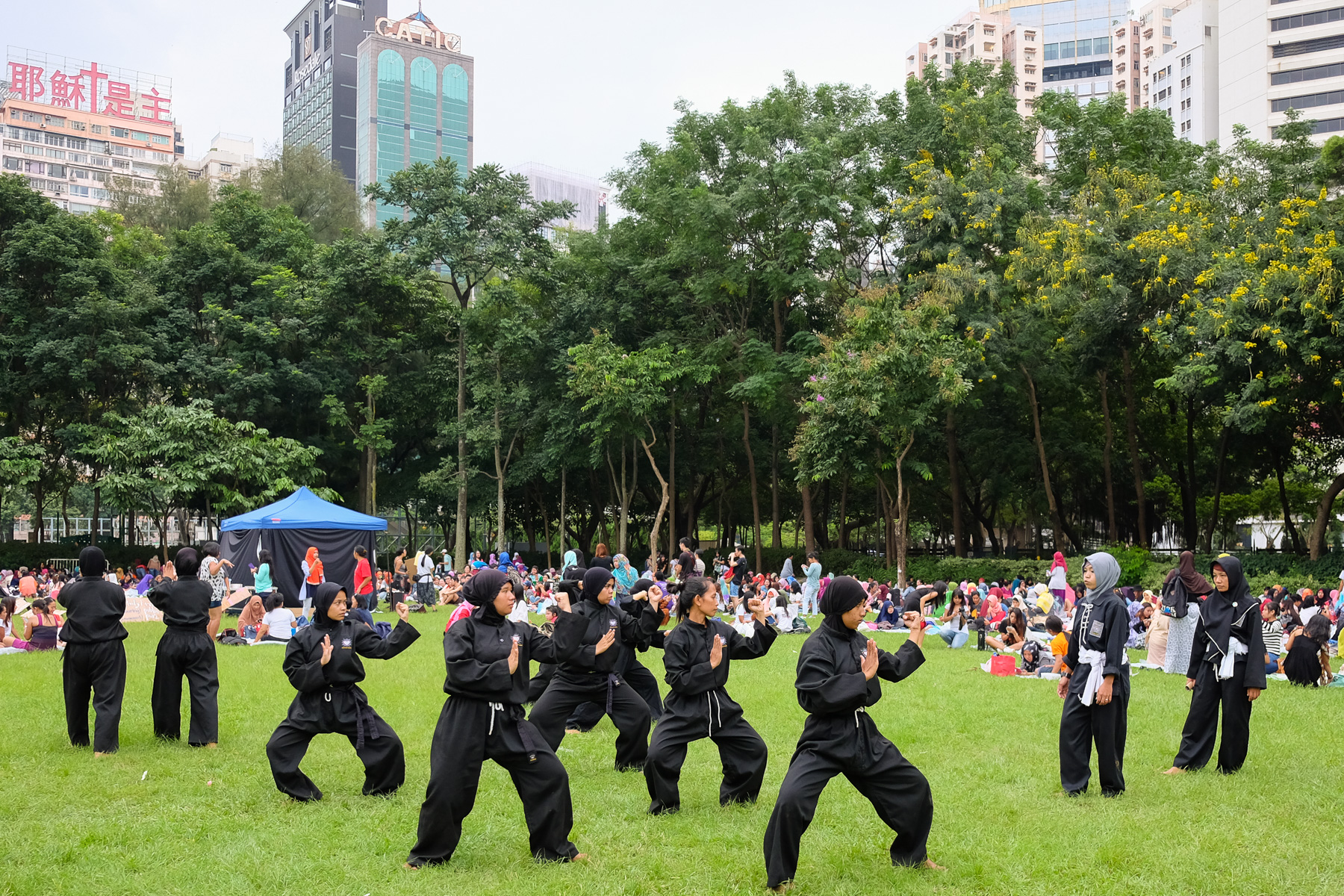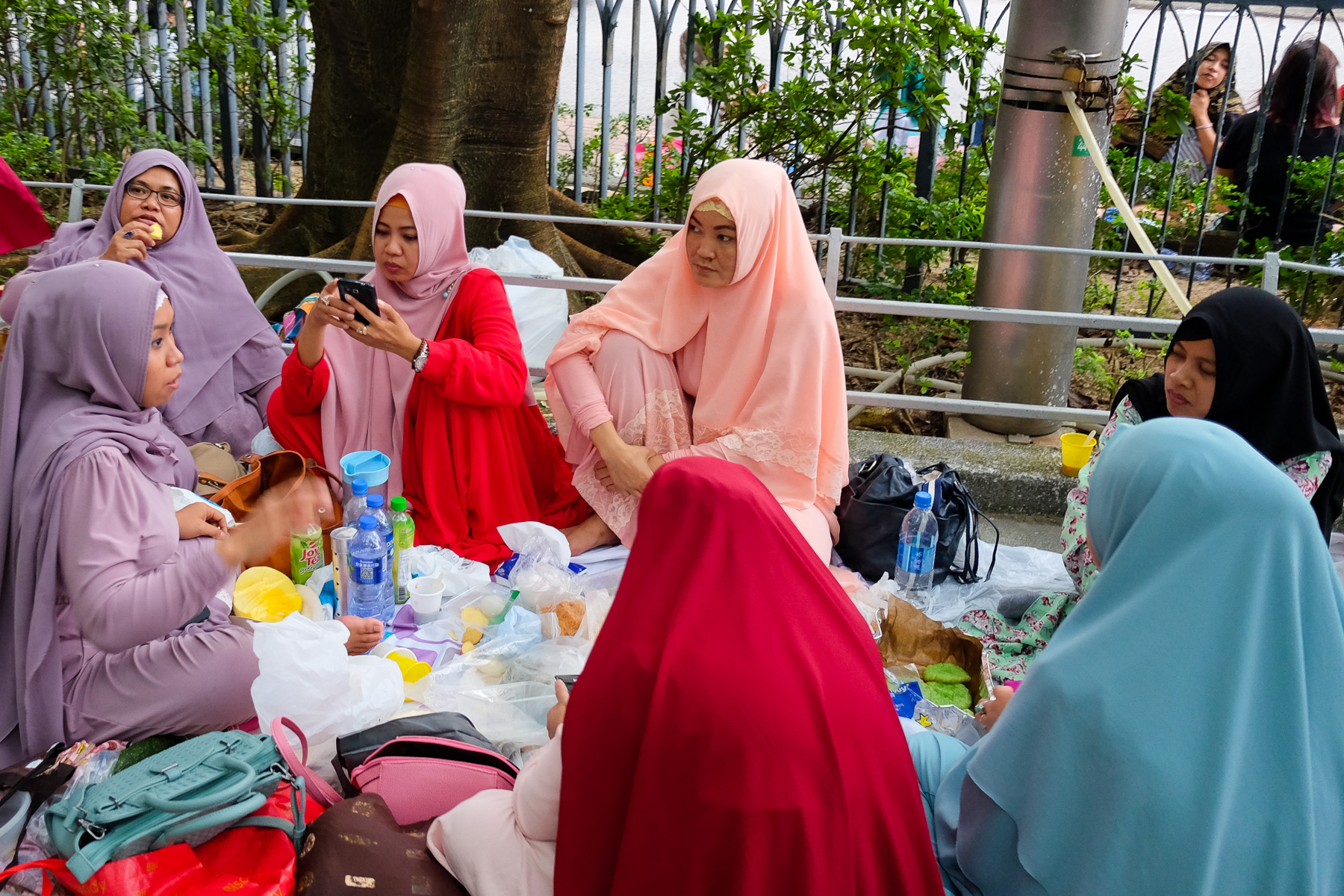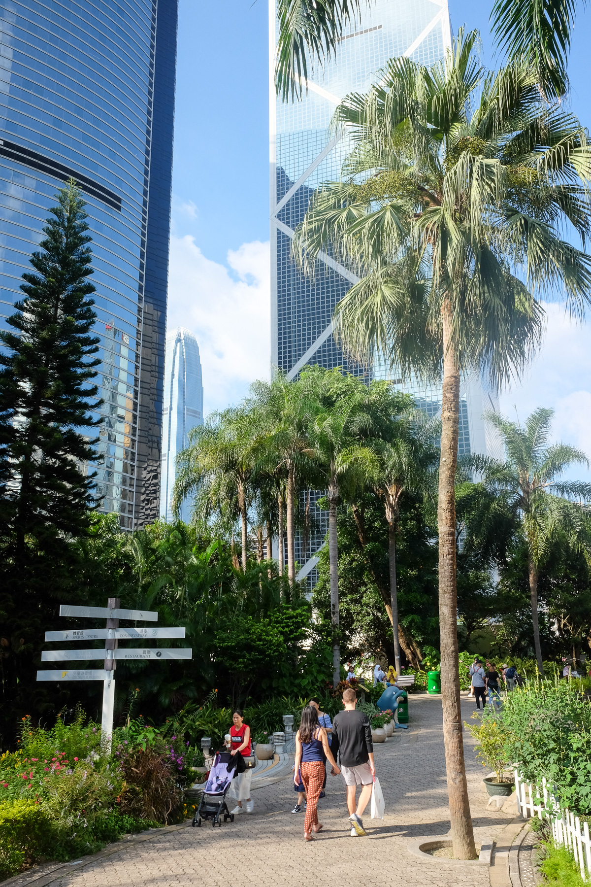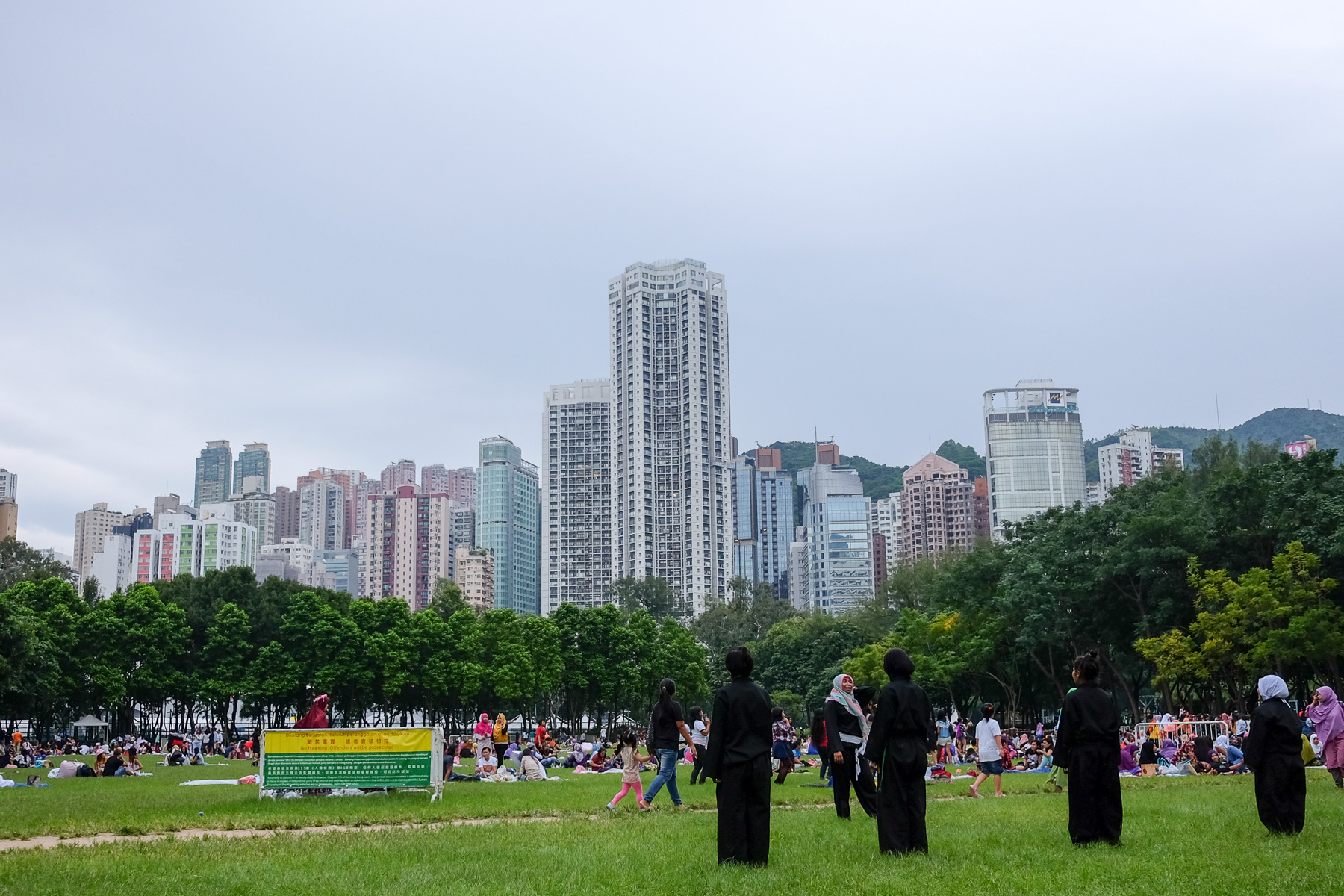 Sonntags sieht man im Park sehr viele indonesische und philippinischen Frauen, die als Haushälterinnen in Hongkong arbeiten und an diesem Tag frei haben. Sie sitzen in großen Gruppen zusammen, teilen Essen, tauschen Frisur- und Make-up-Tipps aus oder nehmen an Tai-Chi- und Kampfkursen teil.