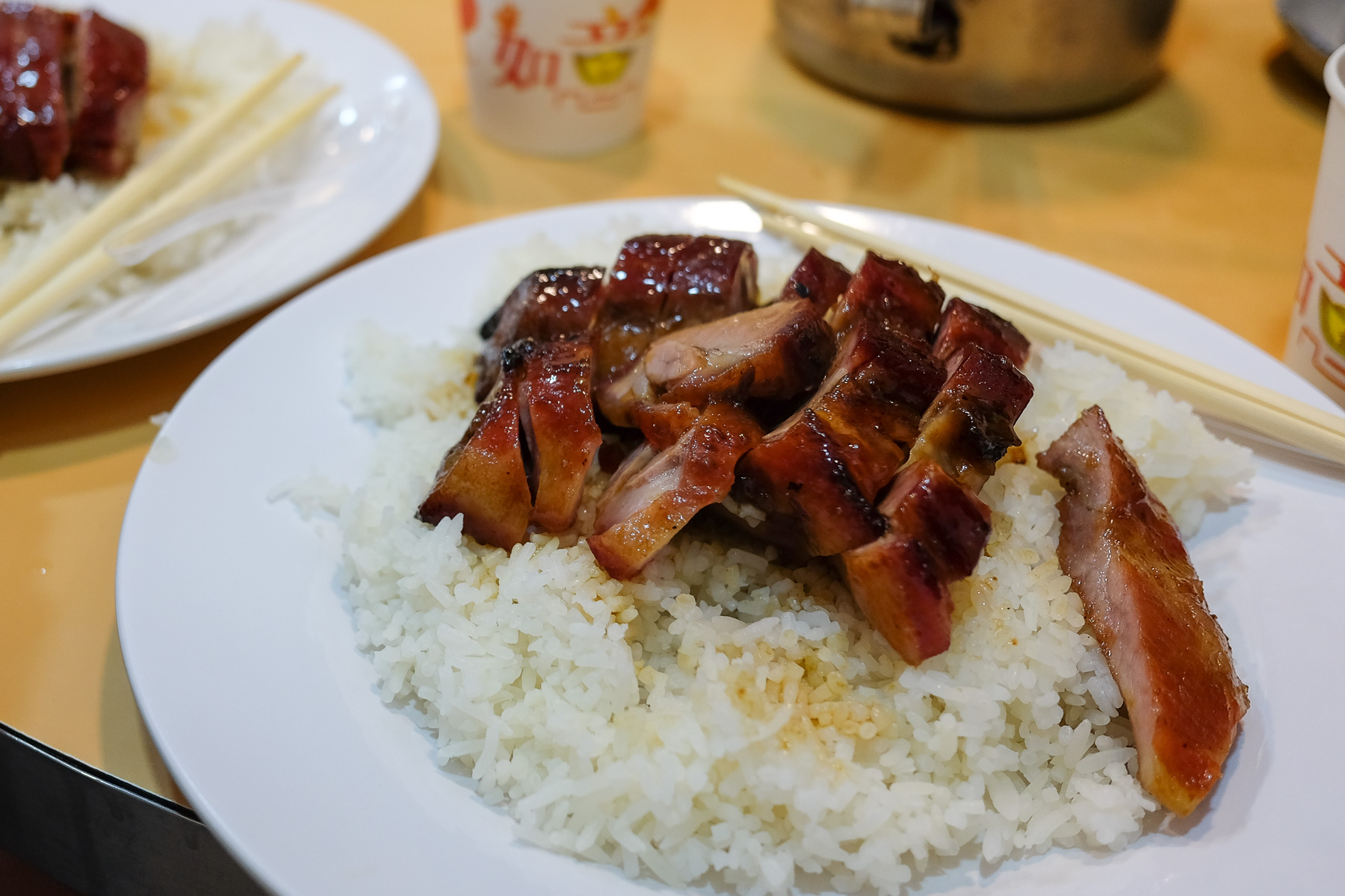 Dieses kleine Restaurant steht unserer Meinung nach für eine authentische Hongkong-Erfahrung. Im Grunde genommen gibt es hier nur eine Handvoll Gerichte und BBQ Pork ist wohl der signature dish. Da das Restaurant wie gesagt sehr winzig ist, wird man schnell rein und wieder rausgeschoben, denn der nächste Gast wartet bereits in der Schlange. 30 HKD (2,50 EUR) kostet die Portion BBQ Schwein mit Reis, die wirklich lecker war.