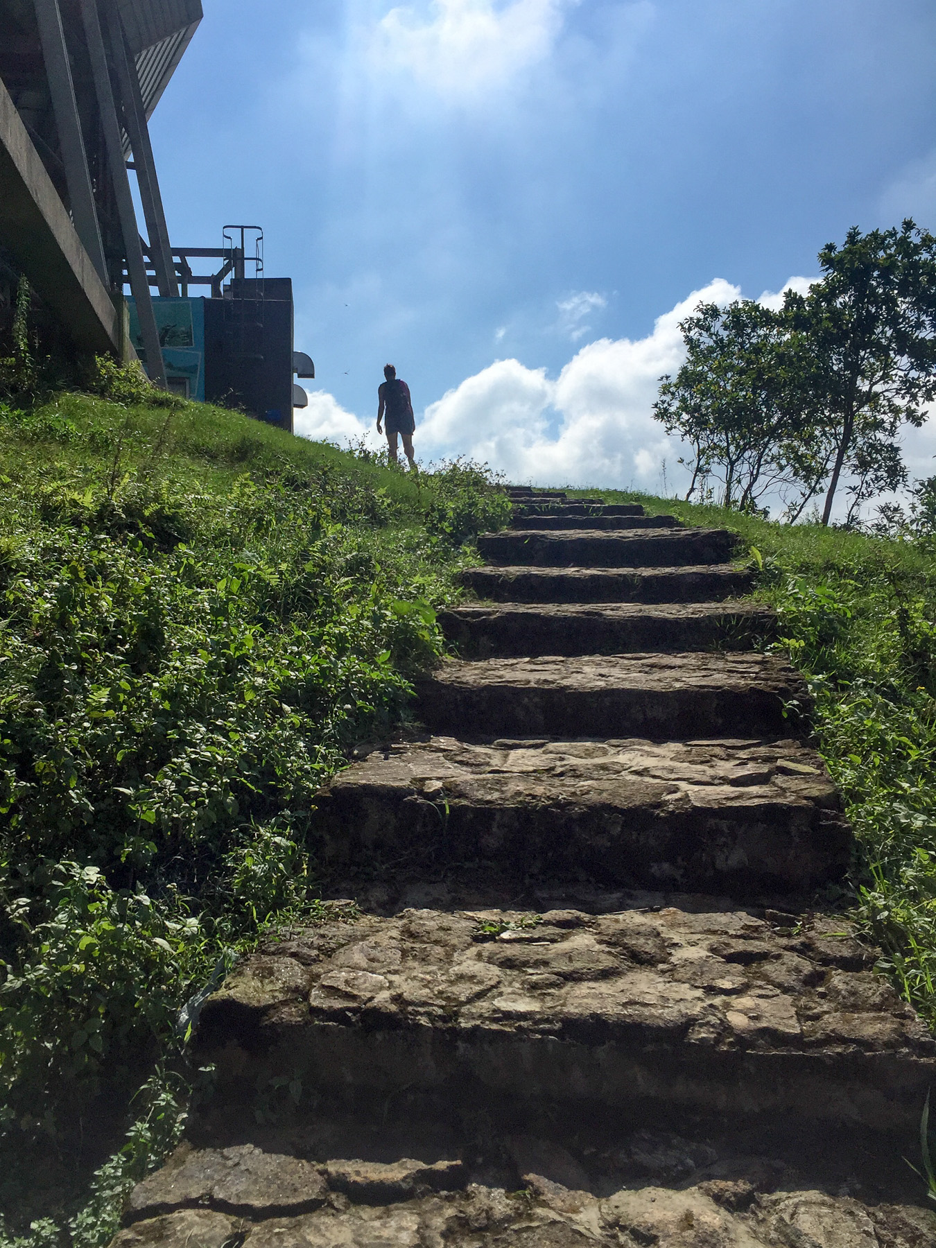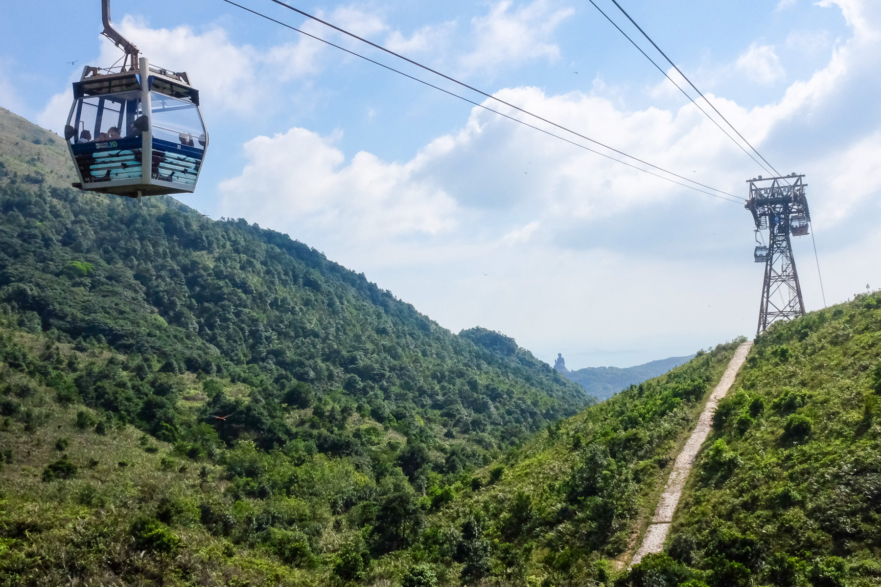 Unser Abschnitt begann in Pak Kung Au, eine Station in Hongkong, die wir mit Bus und Bahn erreichten. Von dort aus starteten wir einen wirklich anstrengenden Weg über so einige Täler und Berge und nicht enden wollenden Stufen, bis wir endlich die berühmte Buddha-Statue erreichten. Meine Höhenangst wurde bei dem Auf und Ab immer wieder auf die Probe gestellt. Die wunderbaren Panorama-Ausblicke waren es aber auf jeden Fall wert, mit zittrigen Knien den nächsten Aufstieg zu erklimmen.