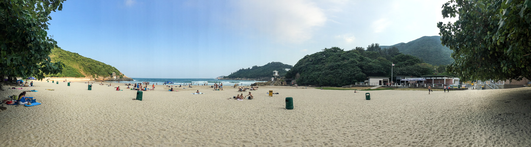 Wir suchten uns den Abschnitt raus, der bei Shek-O startet (übrigens auch ein sehr schöner Strand), wo sich eine Bushaltestelle befinden sollte. Da wir beide ein bisschen unsicher war, wo genau sich diese befinden sollte, stiegen wir leider zu früh aus. Nach einer kurzen Diskussion, wer denn jetzt an diesem Schlamassel die Schuld trägt (eindeutig Marc), sahen wir, dass wir uns direkt an einem anderen Wanderweg befanden, der den Dragon’s Back Trail kreuzt. Also alles eigentlich gar nicht so schlimm. Der Dragon’s Back Trail war eindeutig beliebter als der Lantau Island Hike und es waren so einige Leute mit uns unterwegs. Die Aussicht vom Berg auf die Küste wirkte wie von einer Postkarte und wir konnten unser Glück gar nicht richtig fassen. Am Ende der Wanderung kamen wir an dem wunderschönen Surfer-Strand Big Wave Bay an, wo wir noch ein bisschen entspannten, bevor es mit dem Bus zurück in die Stadt ging.