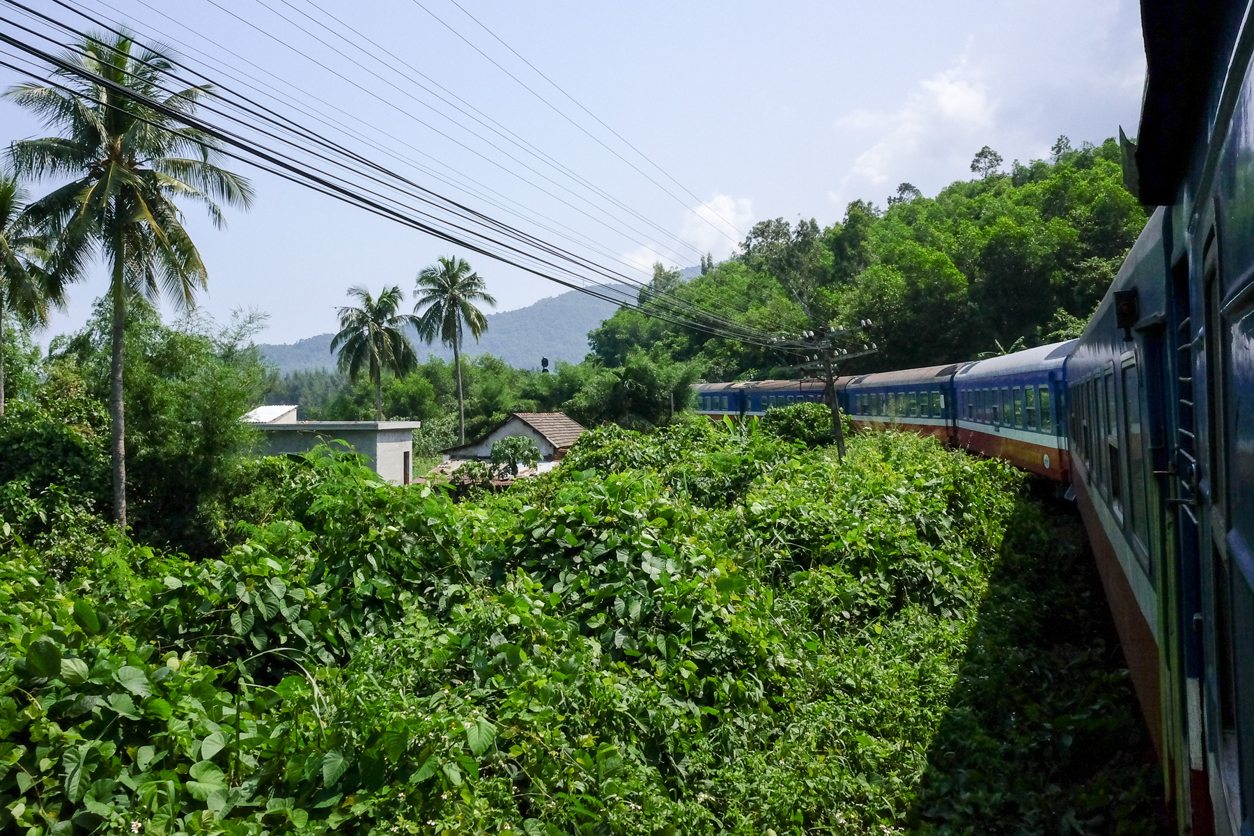 Zwischen der Stadt Hue und unserer Haltestelle Da Nang kam dann der schönste Teil der Strecke. Der Zug schlängelte sich ganz langsam an der Küste entlang den Berg hoch. Die Landschaft war traumhaft schön und ich verbrachte die zwei Stunden am Fenster stehend, die Kamera und das Handy in der Hand und konnte mich gar nicht mehr einkriegen. Genau so hatte ich mir das vorgestellt! Und selbst Marc musste zugeben, dass die Fahrt viel Spaß gemacht hatte (ha!).