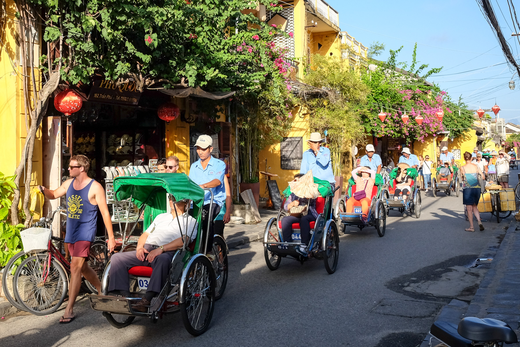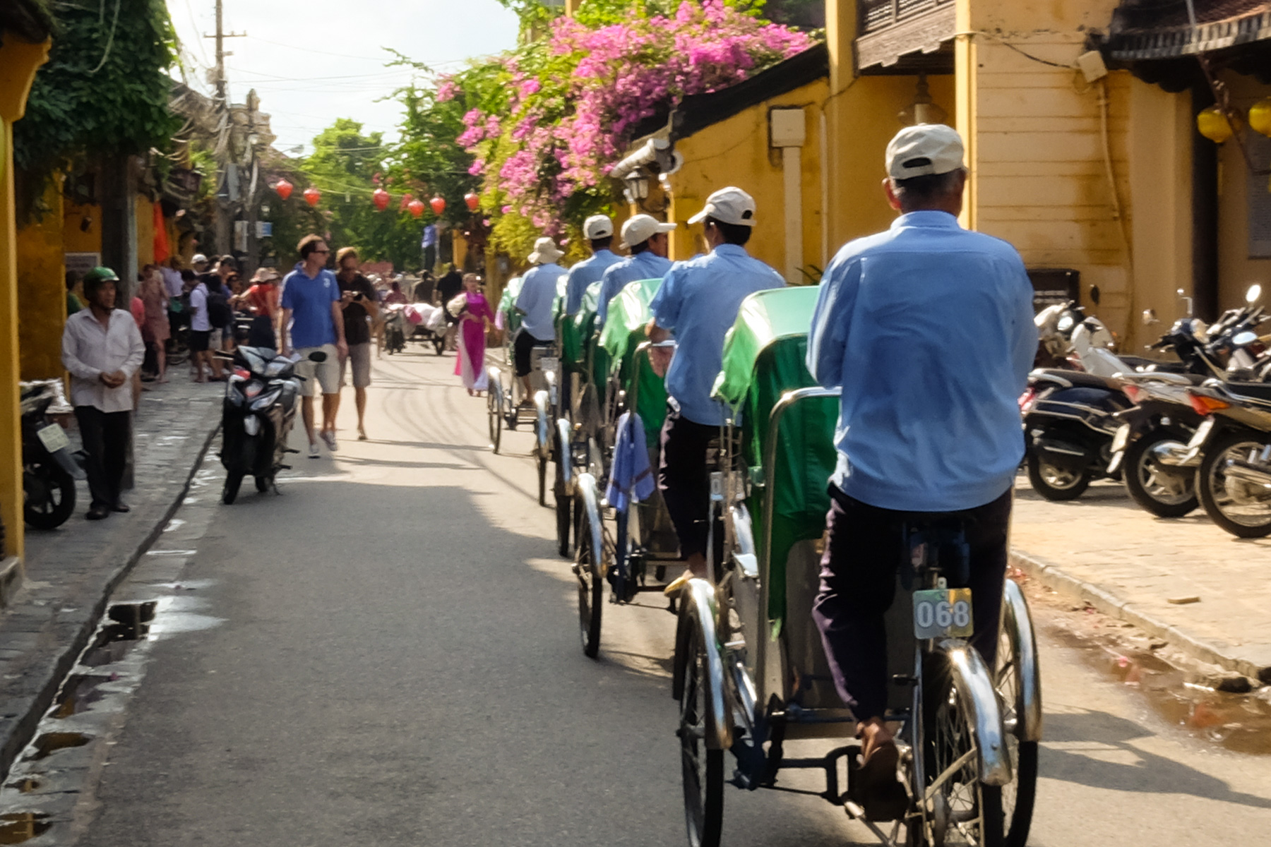 In Da Nang angekommen stiegen wir trotz Zurufe zahlreicher Taxifahrer am Bahnhof (“Hello, hello! Taxi, hello!”) in einen Minibus Richtung Hoi An. Obwohl ich vorab recherchiert hatte, dass ein Ticket 20.000 Dong kosten sollte, bestand der Busfahrer auf den Preis von 50.000 Dong. Selbst nach einigen Versuchen, mit ihm zu verhandeln, blieb er hartnäckig. Zähneknirschend gab ich ihm das Geld und ärgerte mich die komplette Fahrt darüber, dass wir so abgezockt wurden.
