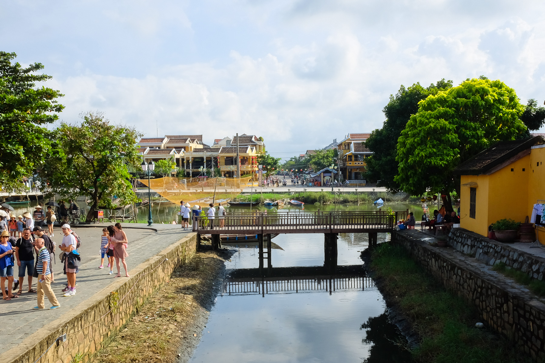Mittags gingen wir ins Restaurant Nu Eatery, das sich etwas versteckt in einer kleinen Gasse in der Altstadt befand. Auf dem Weg dorthin überquerten wir den Fluß über die berühmte japanische Brücke in Hoi An, für die man sogar Eintritt bezahlen musste. Marc bestellte sich Banh Mi mit Pulled Pork und ich Reis mit Hühnchen und gegrillten Okra-Schoten. Das Essen war so lecker, dass wir beschlossen, am nächsten Tag nochmal herzukommen.